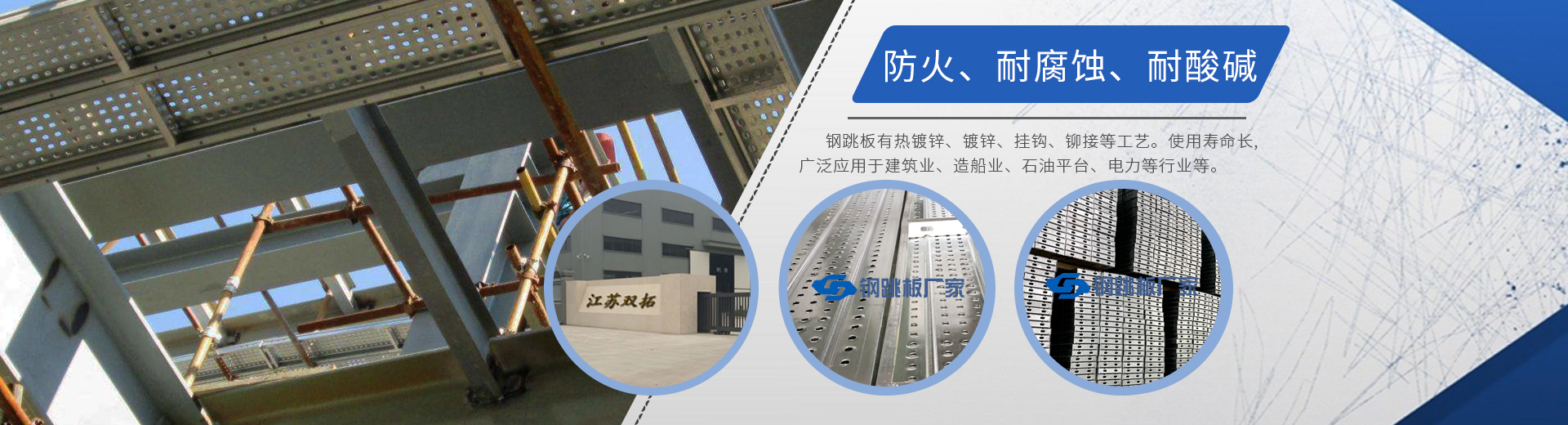 江蘇雙拓機(jī)械設(shè)備有限公司位于江蘇泰興黃橋古鎮(zhèn),是一家集研發(fā)、生產(chǎn)、銷售新型熱鍍鋅鋼跳板、腳手架扣件等工程物資和鋼貿(mào)、物流為一體的中國工程物資企業(yè),擁有四大全自動生產(chǎn)流水線,產(chǎn)品暢銷各地。公司也是中國石油、中國石化、中國能源建設(shè)等石化施工企業(yè)指定供應(yīng)商。 公司成立以來,始終倡導(dǎo)并堅(jiān)持安全和品質(zhì)成就未來的產(chǎn)品理念,現(xiàn)已成為中國腳手架鋼跳板品牌。……